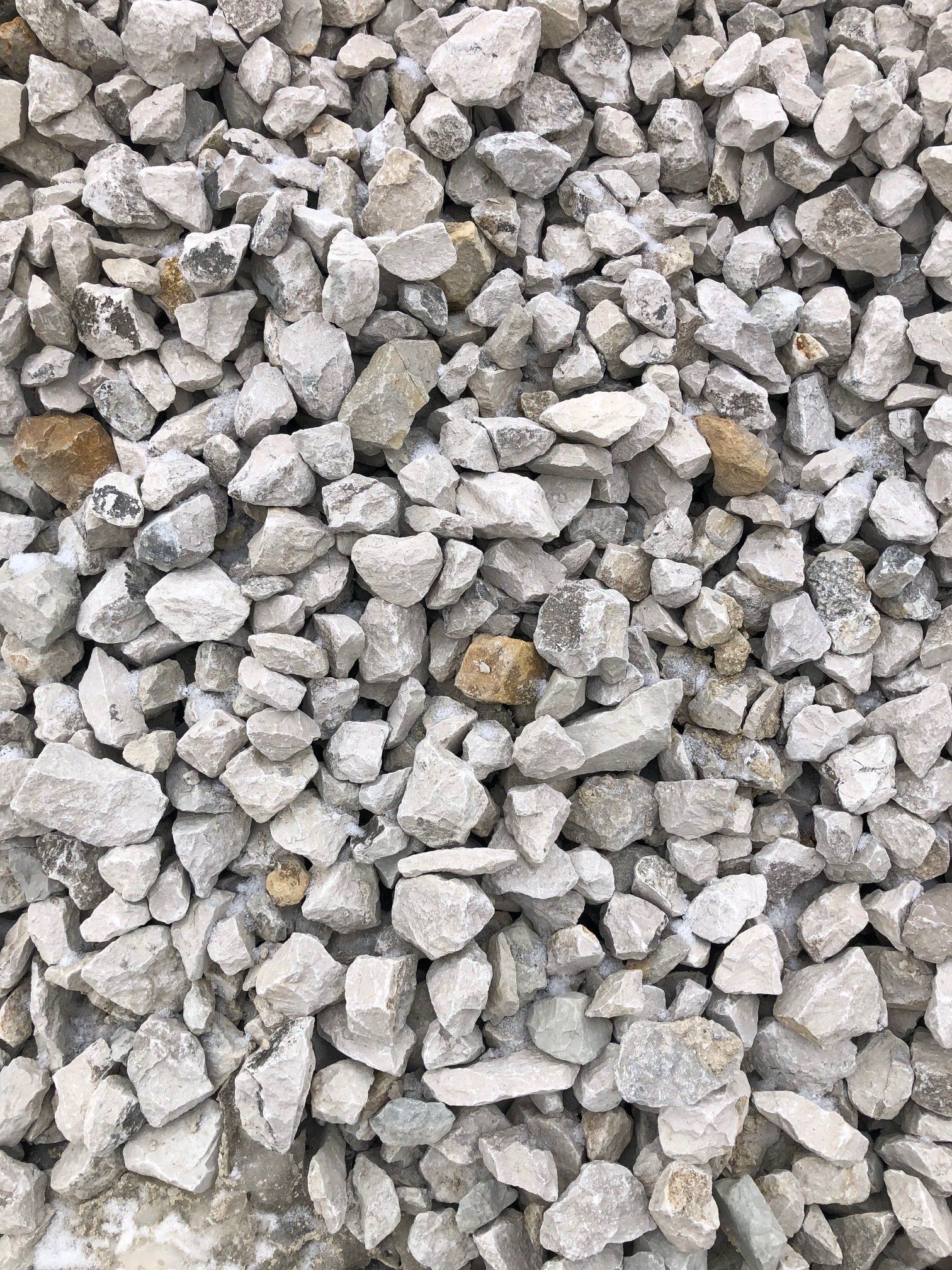 Our driveway chips, sometimes called limestone gravel, are made up of crushed limestone ranging in size from 1/8" to 7/8". They are used for driveways, parking lots, walking paths and many other places where a sound base is needed. This product is easy to shovel, making it ideal for use around fence posts, under paving brick, backfilling retaining walls, landscaping, or decorative areas. Once placed, it will pack well and provide a hard surface.